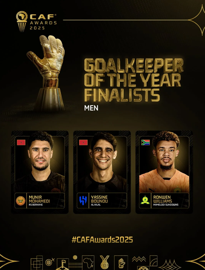 أعلن الاتحاد الإفريقي لكرة القدم "كاف" القائمة النهائية للمرشحين لجائزة أفضل حارس في القارة السمراء عن عام 2025.