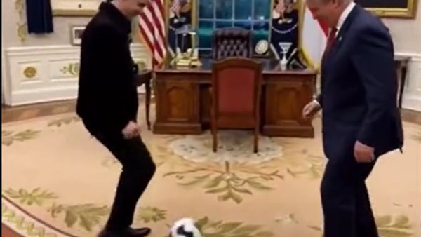 نشر الرئيس الأمريكي دونالد ترامب، مقطع فيديو طريف خلال لعبه كرة القدم مع كريستيانو رونالدو نجم النصر السعودي، في إحدى غرف البيت الأبيض.