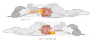 ويساعد النوم على جانبك الأيسر على تخفيف ارتجاع الحمض، في حين أن الأوضاع الأخرى قد تجعل الأمر أسوأ، وفائدة النوم على الجانب الأيسر تعود إلى تشريح الجسم، فبسبب انحناء معدتك، يستقر معظم محتوياتها أسفل المريء عند الاستلقاء على جانبك الأيسر، وتساعد الجاذبية على إبقاء حمض المعدة أسفل فتحة المريء عند النوم في هذه الوضعية، مما يمنع ارتداده إلى الخلف.