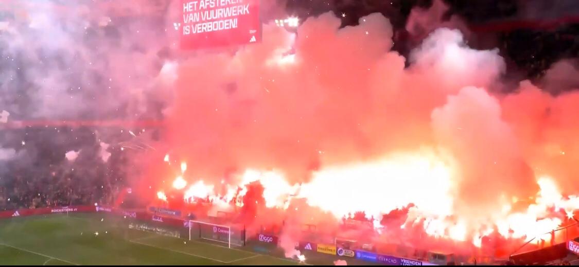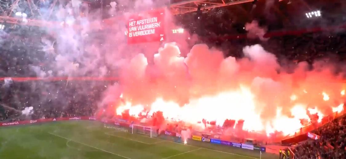 شهدت مباراة أياكس أمستردام وجرونينجن في الجولة الرابعة عشرة من الدوري الهولندي، أمس الأحد، شغبًا جماهيريًا، ما اضطر حكم اللقاء لإيقاف المباراة حرصًا على سلامة الموجودين في الملعب.