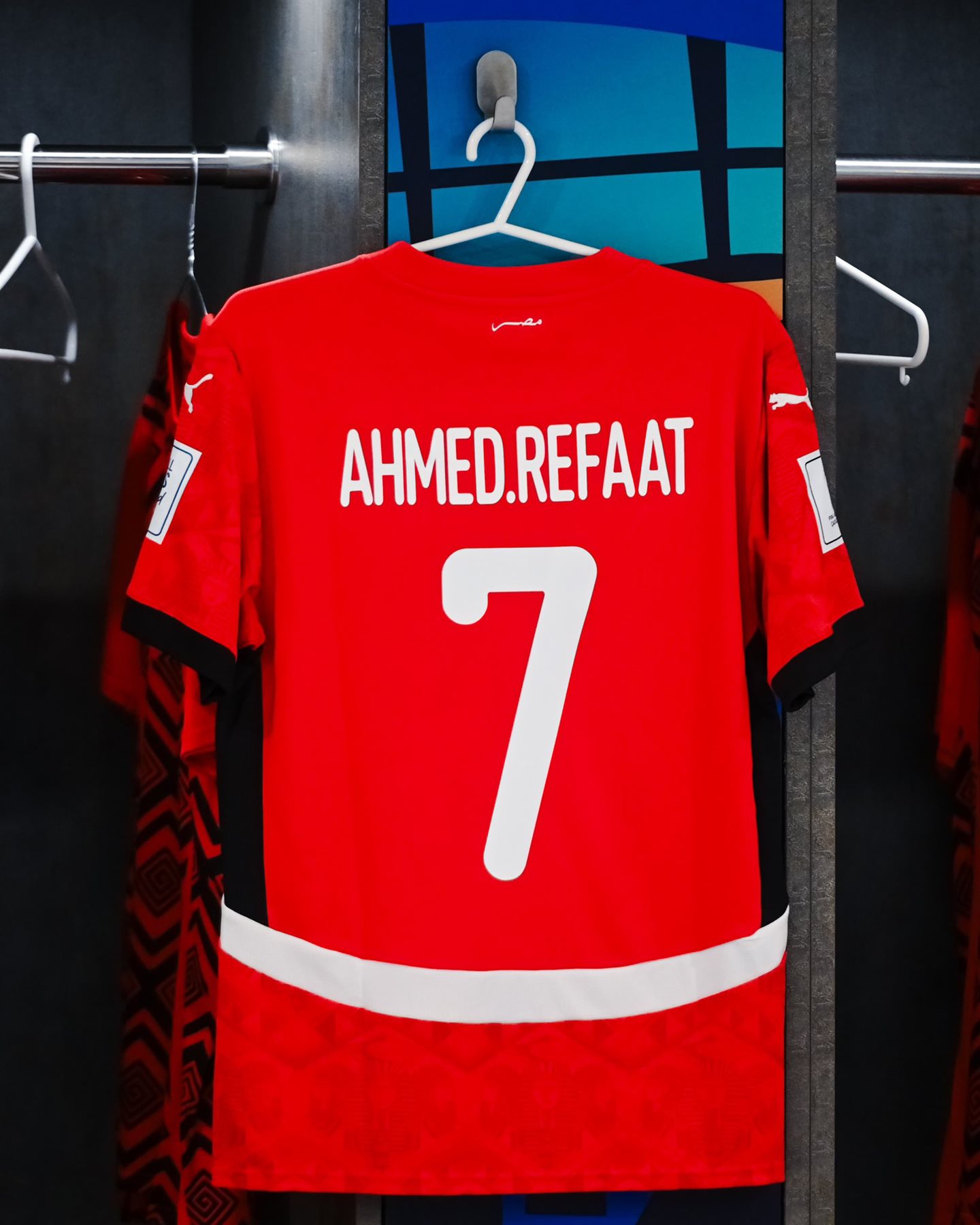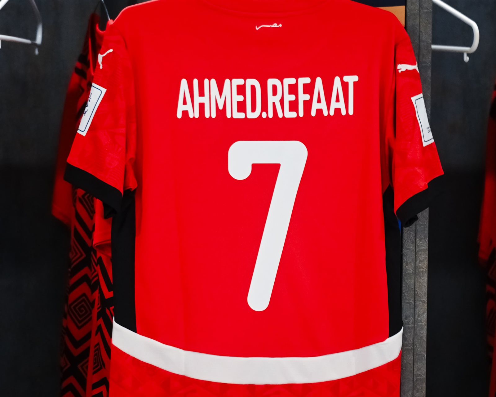 تكريما للراحل.. قميص أحمد رفعت في غرفة ملابس منتخب مصر قبل مواجهة الكويت (صور)