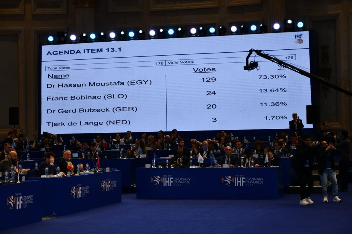 وتفوق الدكتور حسن مصطفى على منافسيه الثلاثة في سباق الرئاسة، وهم فرانك بوبيناك من سلوفينيا، وجيرد بوتزيك من ألمانيا، وتجارك دي لانج من هولندا، بعدما حصل على الأغلبية المطلوبة من أصوات الجمعية العمومية، ليؤكد استمرار دعمه الدولي ومكانته المؤثرة داخل منظومة كرة اليد العالمية.