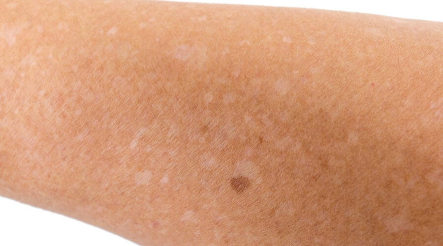 تظهر هذه البقع البيضاء عادةً في المناطق الأكثر تعرضًا لأشعة الشمس، مثل الساقين والذراعين والظهر والوجه، وهي صغيرة كالنمش عادةً ما يتراوح حجمها بين 2 و5 مليمترات وتنتشر في العائلات.