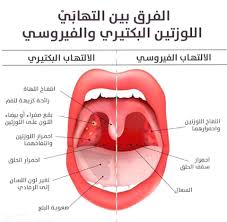 - بقع حمراء أو بقع بيضاء على اللوزتين