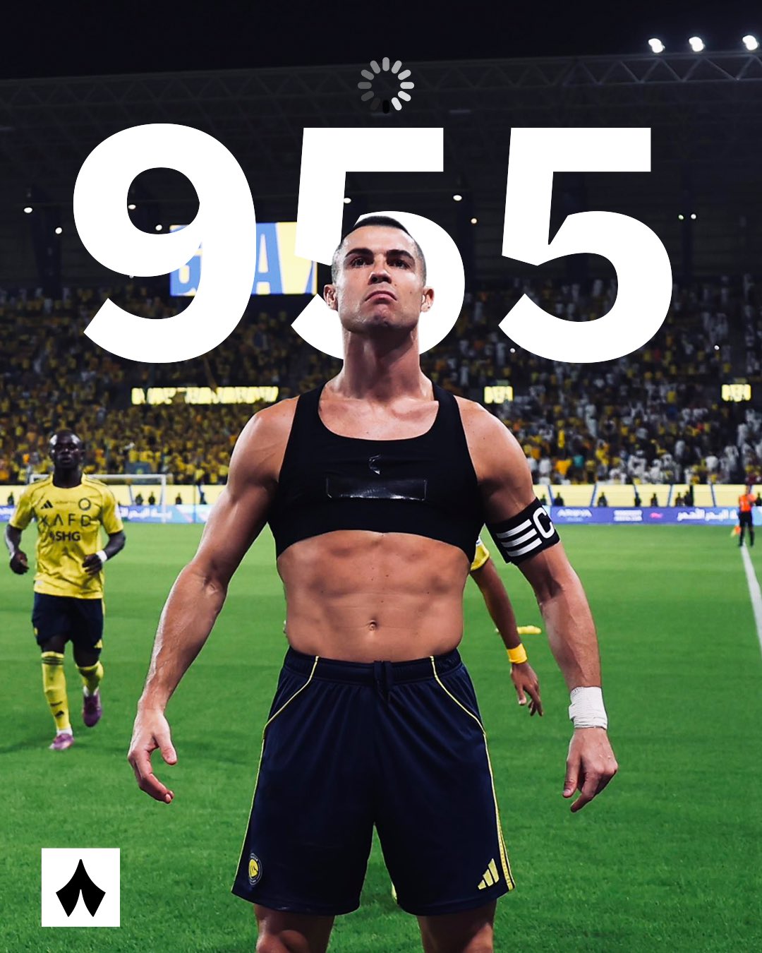 رفع النجم البرتغالي رصيده إلى 955 هدفا عبر مسيرته الكروية بعد أن أحرز ثنائية في مرمى الأخدود.