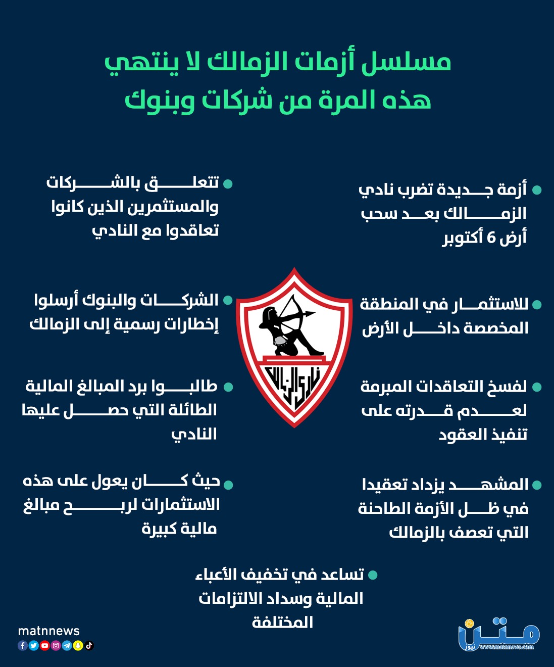 حلقة جديدة من سلسلة أزمات نادي الزمالك.. هذه المرة من شركات وبنوك