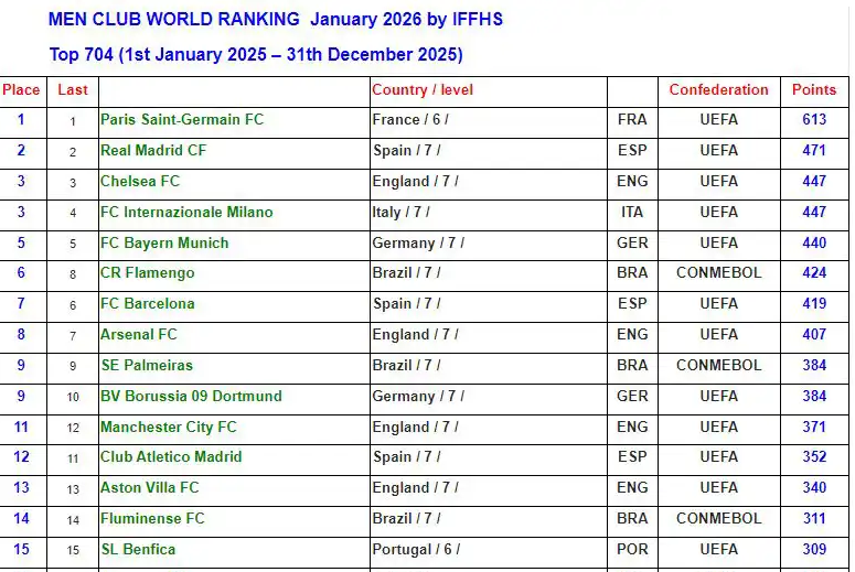 كشف الاتحاد الدولي لتاريخ وإحصاءات كرة القدم (IFFHS) عن قائمة أفضل نادٍ في العالم لعام 2025، والذي تصدرها عملاق الدوري الفرنسي باريس سان جيرمان.