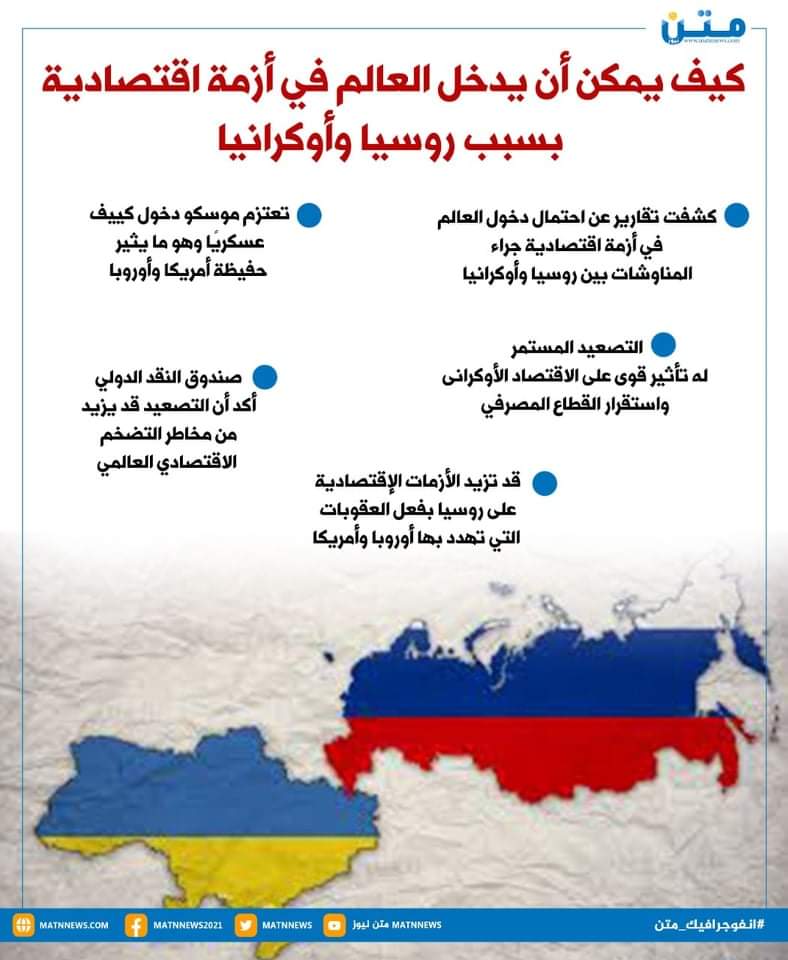 كيف يمكن أن يدخل العالم في أزمة اقتصادية بسبب روسيا وأوكرانيا؟ الخميس 27/يناير/2022 - 12:16 ص 1/27/2022 12:16:45 AM انفوجراف متن خاص_ متن نيوز شارك طباعة شارك