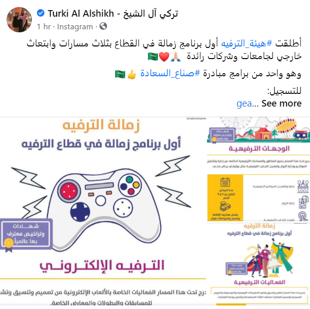 وقال المستشار تركي آل الشيخ على صفحته الرسمية على فيس بوك: “أطلقت هيئة الترفيه أول برنامج زمالة في القطاع بثلاث مسارات وابتعاث خارجي لجامعات وشركات رائدة”.
