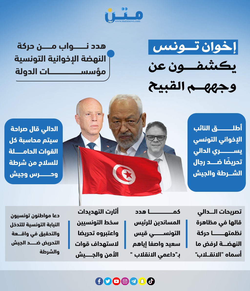 إخوان تونس يكشفون عن وجههم القبيح الثلاثاء 15/فبراير/2022 - 07:48 م 2/15/2022 7:48:47 PM انفوجراف متن محمد حسن شارك طباعة شارك تونس إخوان تونس وجههم القبيح حركة النهضة قيس سعيد