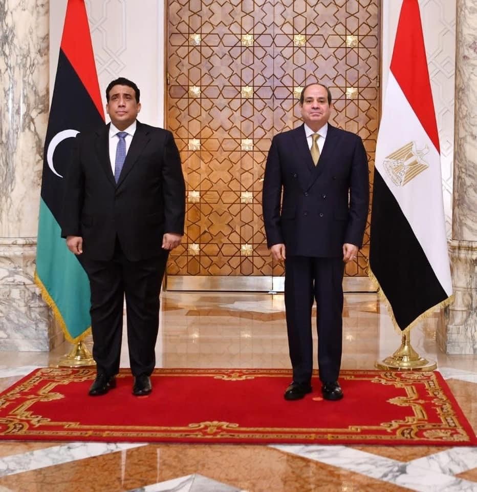 كما كانت القاهرة الوجهة الأولى لرئيس الوزراء الليبي الجديد عبد الحميد دبيبة، في 18 فبراير، وأعرب عن تقديره لجهود مصر في حل الصراع الليبي، والسعي لإنهاء الانقسام، ودعم مؤسسات البلاد في مواجهة التنظيمات الارهابية، وحرص الرئيس السيسي خلال لقائه دبيبة على تأكيد دعم مصر لترسيخ دعائم الدولة الليبية الجديدة في ثلاثة جوانب رئيسية، منها إرساء دعائم الدولة الجديدة، واستعادة الأمن، وتنفيذ المشاريع الخدمية والتنموية التي لها تأثير مباشر على الليبيين.