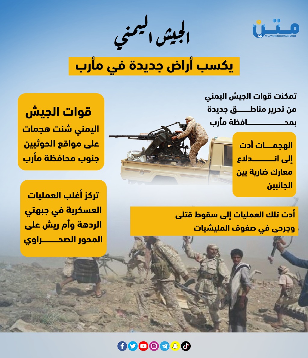 الجيش اليمني يكسب أراض جديدة في مأرب السبت 19/فبراير/2022 - 09:35 م 2/19/2022 9:35:52 PM انفوجراف متن محمد حسن شارك طباعة شارك اليمن الجيش اليمني الأزمة اليمنية المجلس الانتقالي الجنوبي في اليمن تحالف دعم الشرعية في اليمن