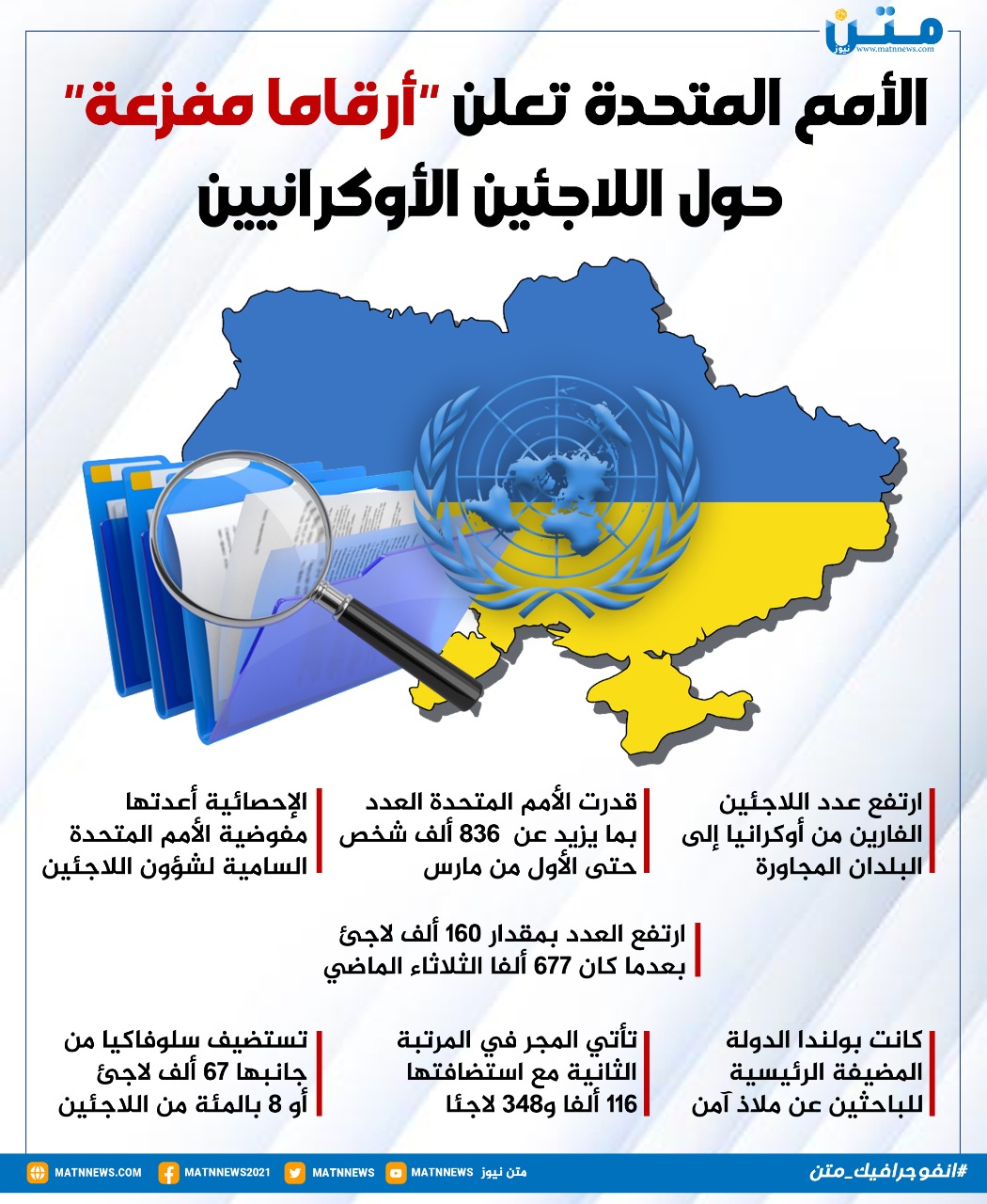 الأمم المتحدة تعلن أرقامًا مفزعة حول اللاجئين الأوكرانيين الأربعاء 02/مارس/2022 - 08:33 م 3/2/2022 8:33:59 PM انفوجراف متن محمد حسن شارك طباعة شارك أوكرانيا الأمم المتحدة اللاجئين الأوكرانيين أرقام مفزعة الحرب الروسية الأوكرانية