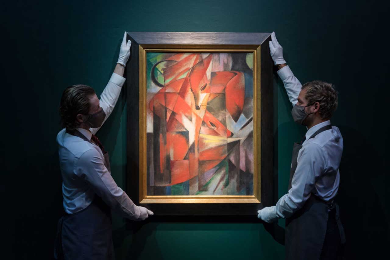 وحققت لوحة "ثعالب" للرسام الألماني فرانز مارك والعائدة لعام 1913 السعر الأعلى، وكانت قد أعيدت مؤخرًا من متحف الماني إلى مالكها السابق في يناير 2021. وقد فاز بالعمل عارض على الهاتف في لندن في مقابل 42.7 مليون جنيه (57 مليون دولار) بما يتجاوز تقديراته البالغة 35 مليون جنيه (46.8 مليون دولار).