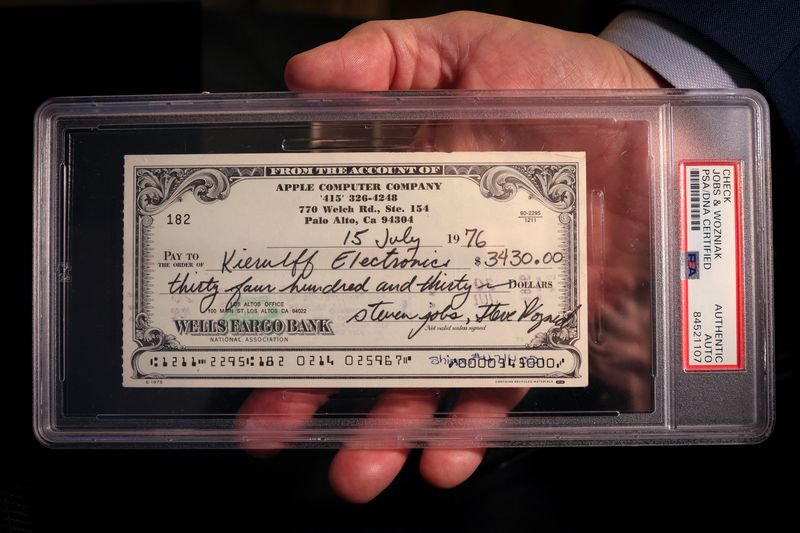 وسيكون العنصر الأهم ضمن مزاد "ثورة ستيف جوبز: إنجلبارت، أتاري وأبل" هو شيك صادر في يوليو (تموز) 1976 بقيمة 3430 دولارًا لشراء قطع لجهاز أبل 1، وقع عليه مؤسسا أبل، ستيف جوبز وستيف وزنياك.