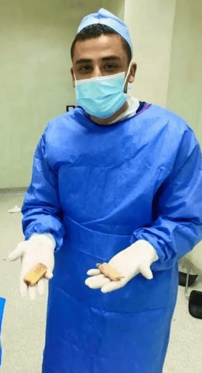 وتمكن فريق طبي بمستشفى كفر الزيات العام التابع لمديرية الصحة بالغربية (عاصمة إقليم الدلتا)، من استخراج جسم غريب عبارة عن "هاتف محمول ولفافة أخرى"، من معدة لمريض بعد 20 يوما من ابتلاعهما في عملية استخراج من المعدة إنقاذًا لحياته.