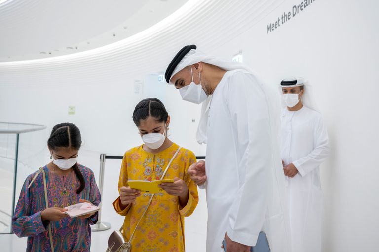 وأشاد بدور الشباب في دعم رسالة "إكسبو 2020 دبي" من خلال مشاركة العالم قصصًا عن عراقة وأصالة الشعب الإماراتي؛ كما أثنى على مستواهم المعرفي والثقافي وحسن ضيافة زوار هذا الحدث العالمي والتي تعكس قيم وكرم الشعب الإماراتي إلى شعوب العالم.