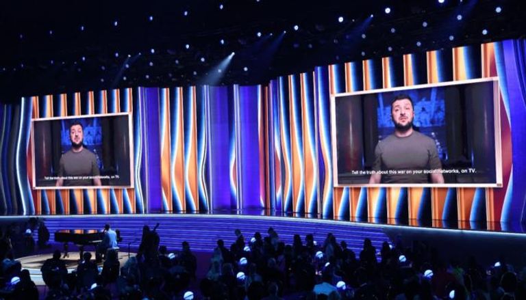 ظهر الرئيس الأوكراني فولوديمير زيلينسكي، الأحد، في شريط مصور تم بثه في حفل توزيع جوائز جرامي الموسيقية في الولايات المتحدة.