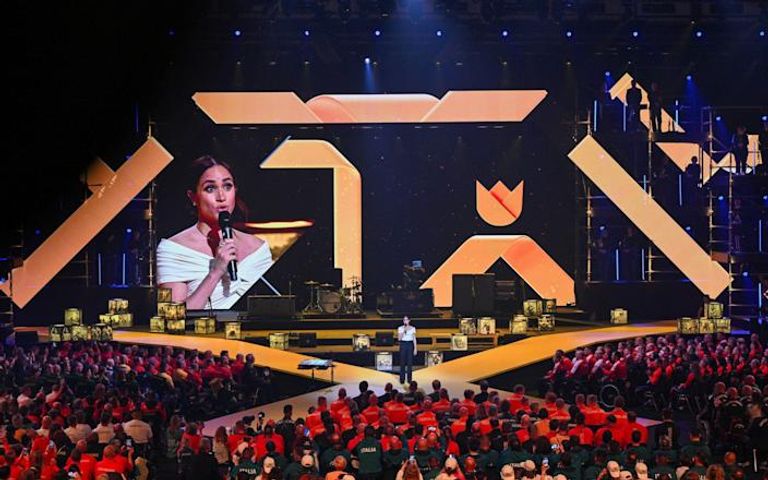 واختتمت خطابها مرحبة: "هو مؤسس Invictus Games، ووالد صغيرينا، أرتشي وليلي، من فضلكم رحبوا معي بزوجي الرائع، الأمير هاري، دوق ساسكس".