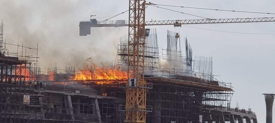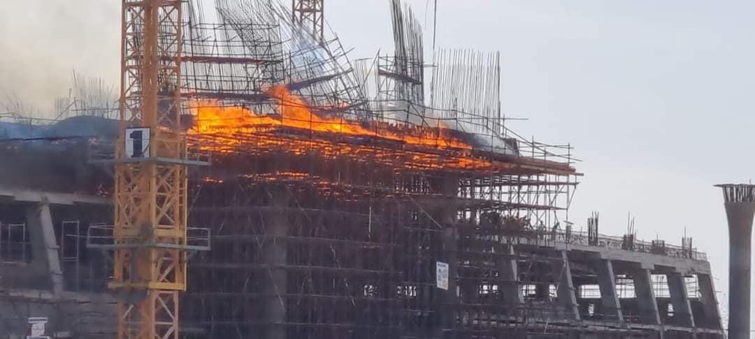 بالصور.. السيطرة على حريق مستشفى تحت الإنشاء بأكتوبر