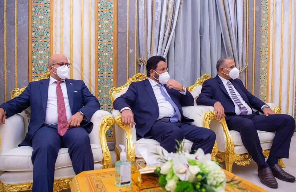 التقى خادم الحرمين الشريفين الملك سلمان بن عبدالعزيز وولي العهد السعودي محمد بن سلمان الرئيس رشاد العليمي واعضاء المجلس الرئاسي في اليمن في العاصمة السعودية الرياض.
