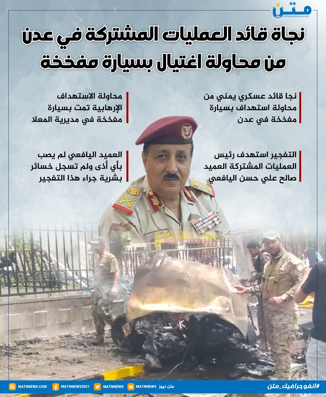 نجاة قائد العمليات المشتركة في عدن من محاولة اغتيال بسيارة مفخخة