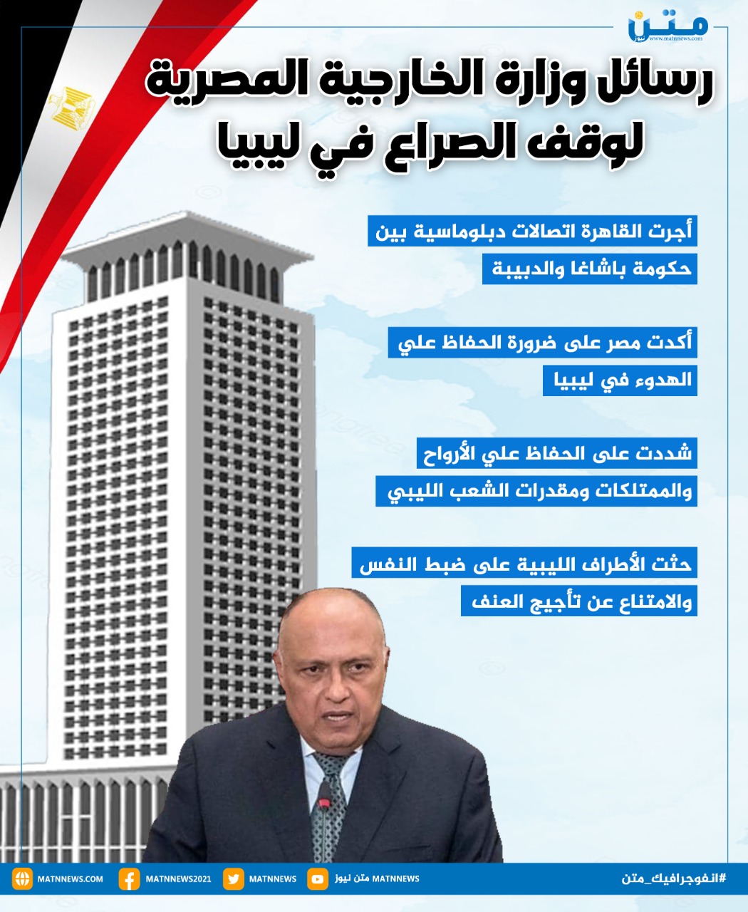 رسائل وزارة الخارجية المصرية لوقف الصراع في ليبيا