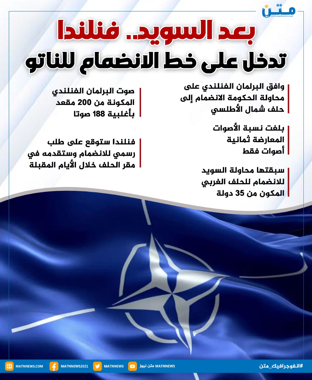 - وافق البرلمان الفنلندي على محاولة الحكومة الانضمام إلى حلف شمال الأطلسي