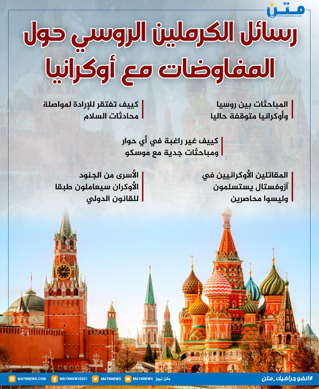 رسائل الكرملين الروسي حول المفاوضات مع أوكرانيا