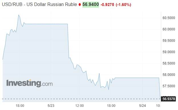 تواصل العملة الروسية تعزيز مواقعها أمام نظيرتيها الأمريكية والأوروبية، وجرى تداول الدولار اليوم الثلاثاء دون مستوى 57 روبلا، وذلك للمرة الأولى منذ مارس 2018، أي في نحو 4 سنوات.