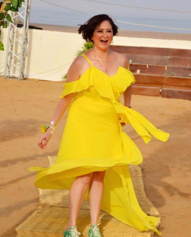 حيث ظهرت الفنانة المصرية مي نور الشريف متألقة بفستان أصفر.