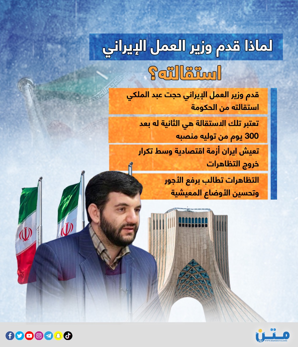 - قدم وزير العمل الإيراني حجت عبد الملكي استقالته من الحكومة