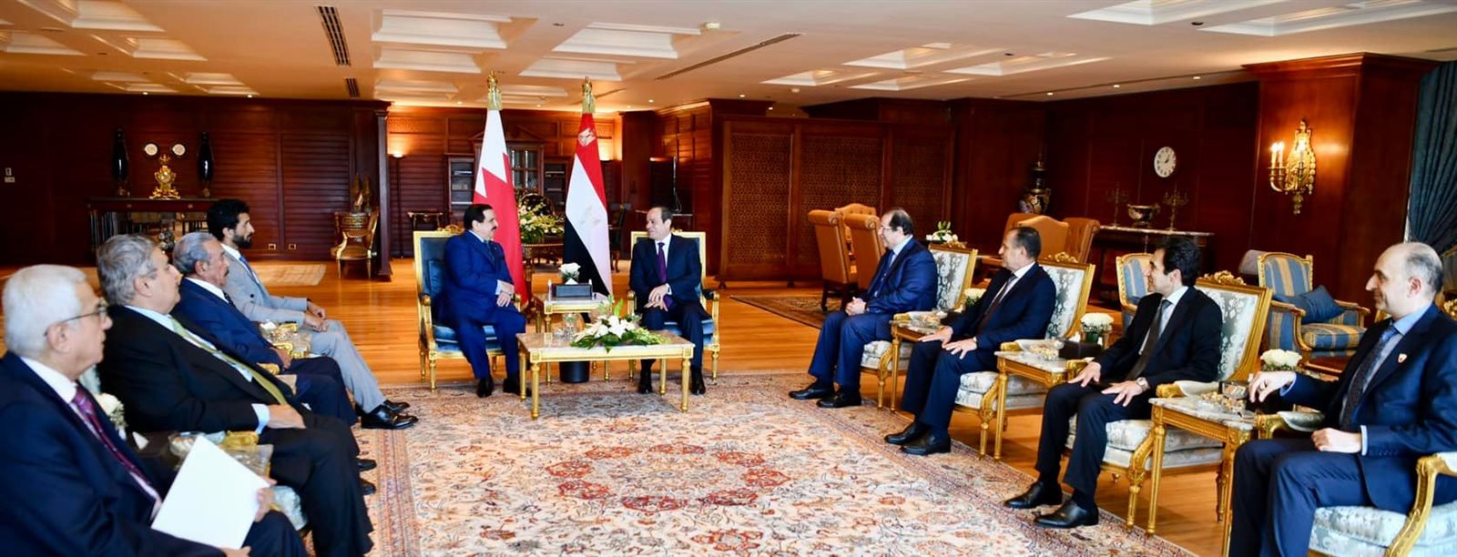 وصرح السفير بسام راضي، المتحدث باسم رئاسة الجمهورية، أن الرئيس السيسي رحب بالشيخ حمد بن عيسى آل خليفة، كما شدد السيسي على اعتزاز مصر بالروابط التاريخية التي تجمع بين البلدين والشعبين الشقيقين.