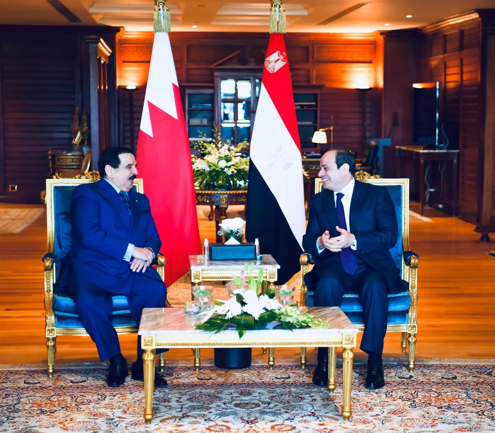 من جانبه؛ أعرب جلالة الملك حمد بن عيسى عن خالص تقديره لحفاوة الاستقبال من السيد الرئيس، مشيدًا بما تتسم به العلاقات المصرية البحرينية من أخوة صادقة ووثيقة، ومؤكدًا أن زيارته الحالية لمصر تأتي استمرارًا لمسيرة العلاقات التاريخية والمتميزة التي تربط البلدين حكومةً وشعبًا وما يجمعهما من مصير ومستقبل واحد، ودعمًا لأواصر التعاون الثنائي على جميع الأصعدة.