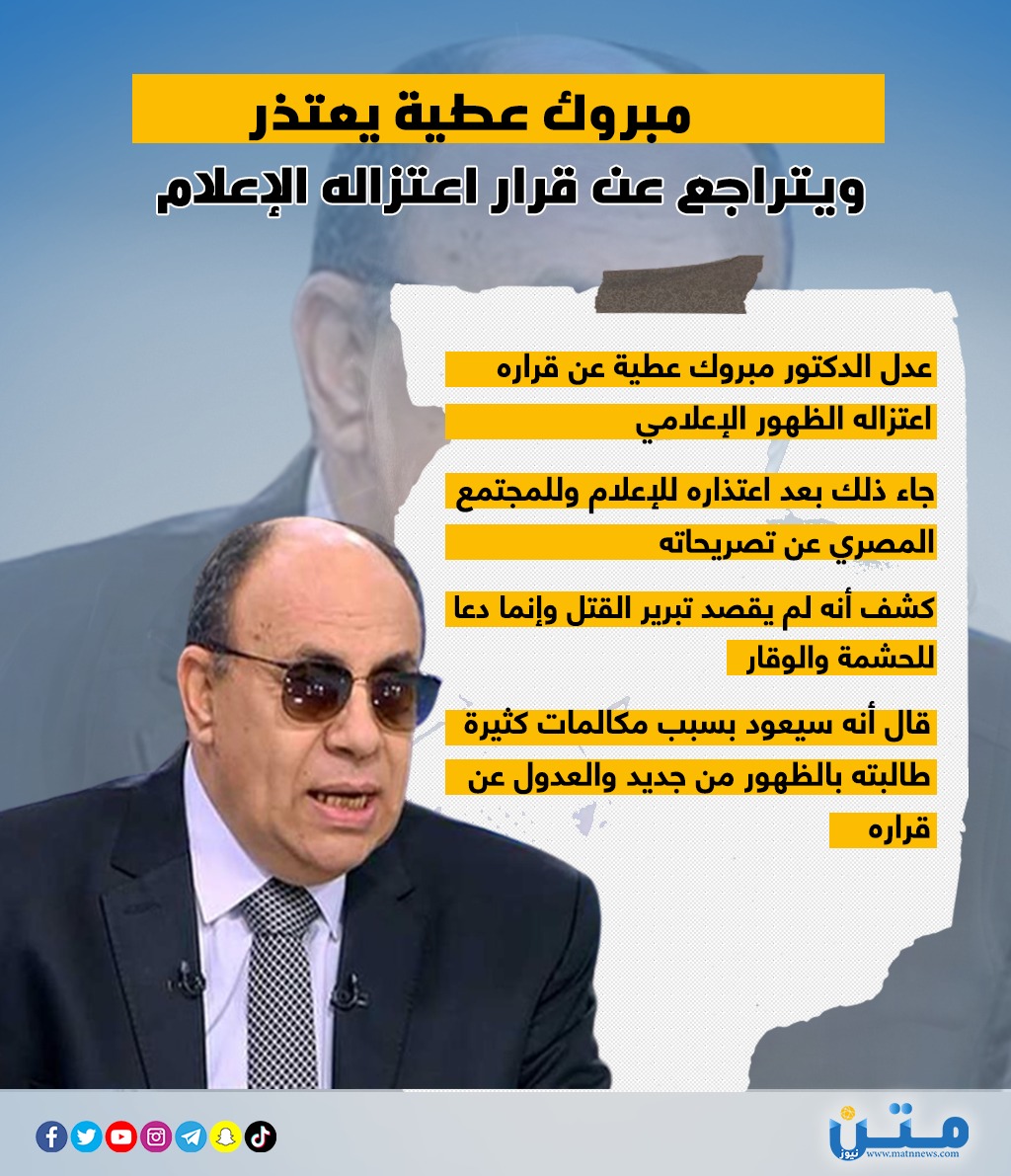 - عدل الدكتور مبروك عطية عن قراره اعتزاله الظهور الإعلامي