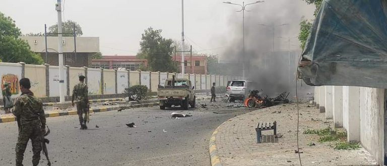 ووقع الانفجار في العاصمة المؤقتة عدن، والذي شوهدت أعمدة الدخان تتصاعد من مكان الحادث.