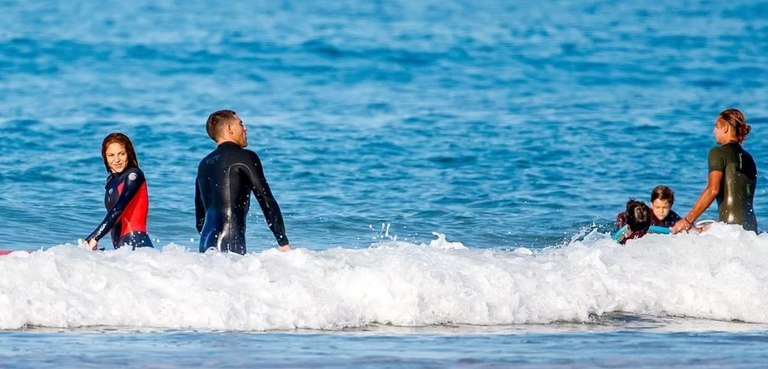 حيث تجاوزت المغنية الكولومبية شاكيرا أحزان انفصالها وظهرت صاحبة 45 عامًا في أثناء رحلة ركوب أمواج في إسبانيا مع صديقها وابنها "ميلان"، وفقًا لما نقلته صحيفة "ديلي ميل" البريطانية.
