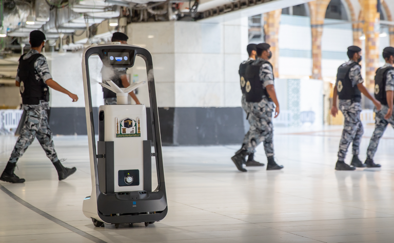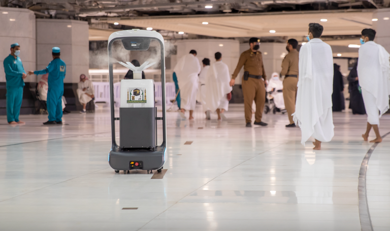يعد الحرم المكي الأكثر تعقيما على مستوى العالم، حيث قامت الرئاسة العامة لشؤون الحرمين بالسعودية، بتوظيف 11 "روبوت" للتعقيم ومكافحة الأوبئة.