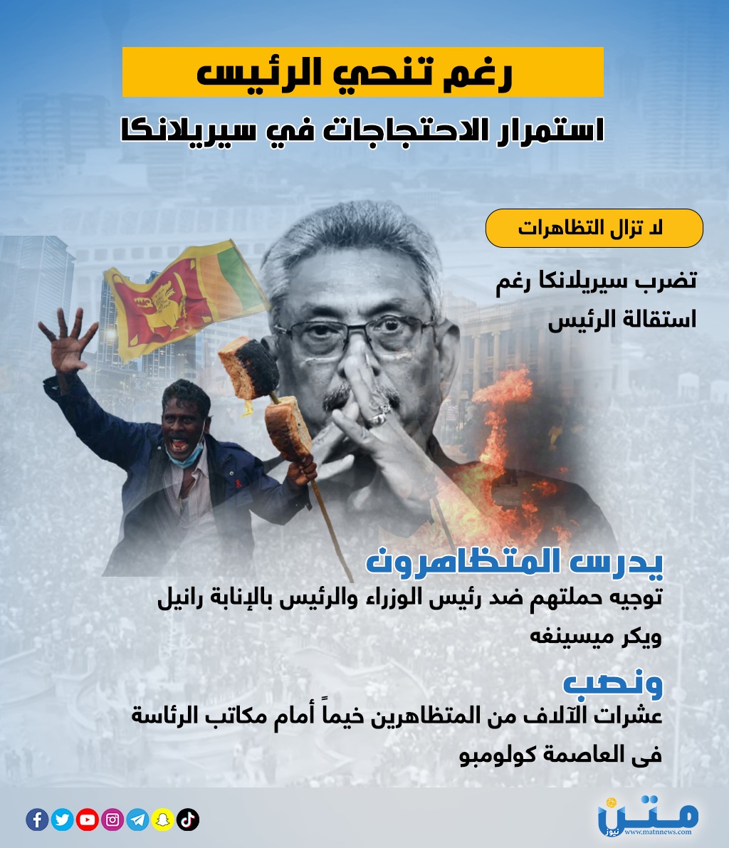 - لا تزال التظاهرات تضرب سيريلانكا رغم استقالة الرئيس