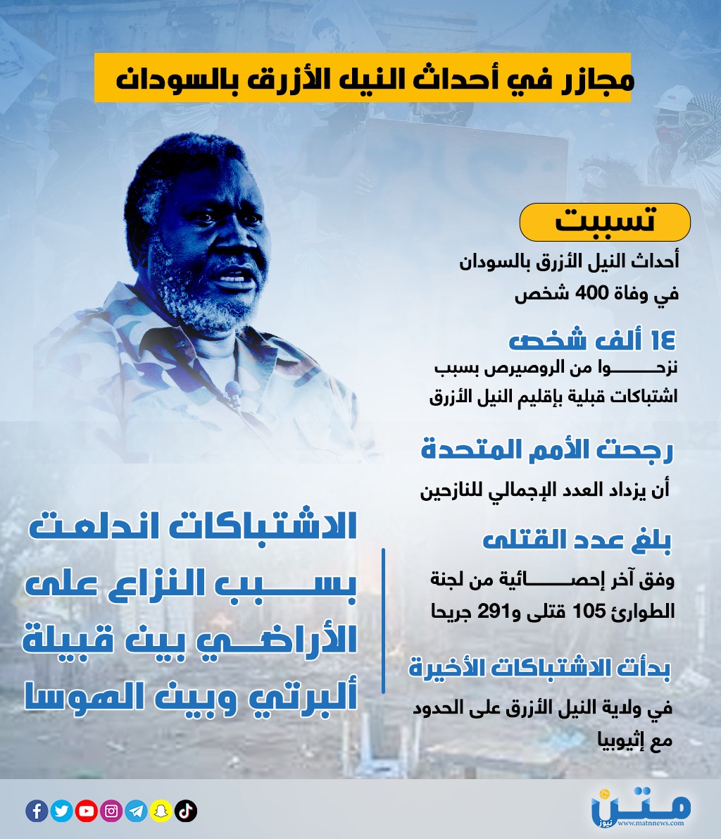 - تسببت أحداث النيل الأزرق بالسودان في وفاة 400 شخص