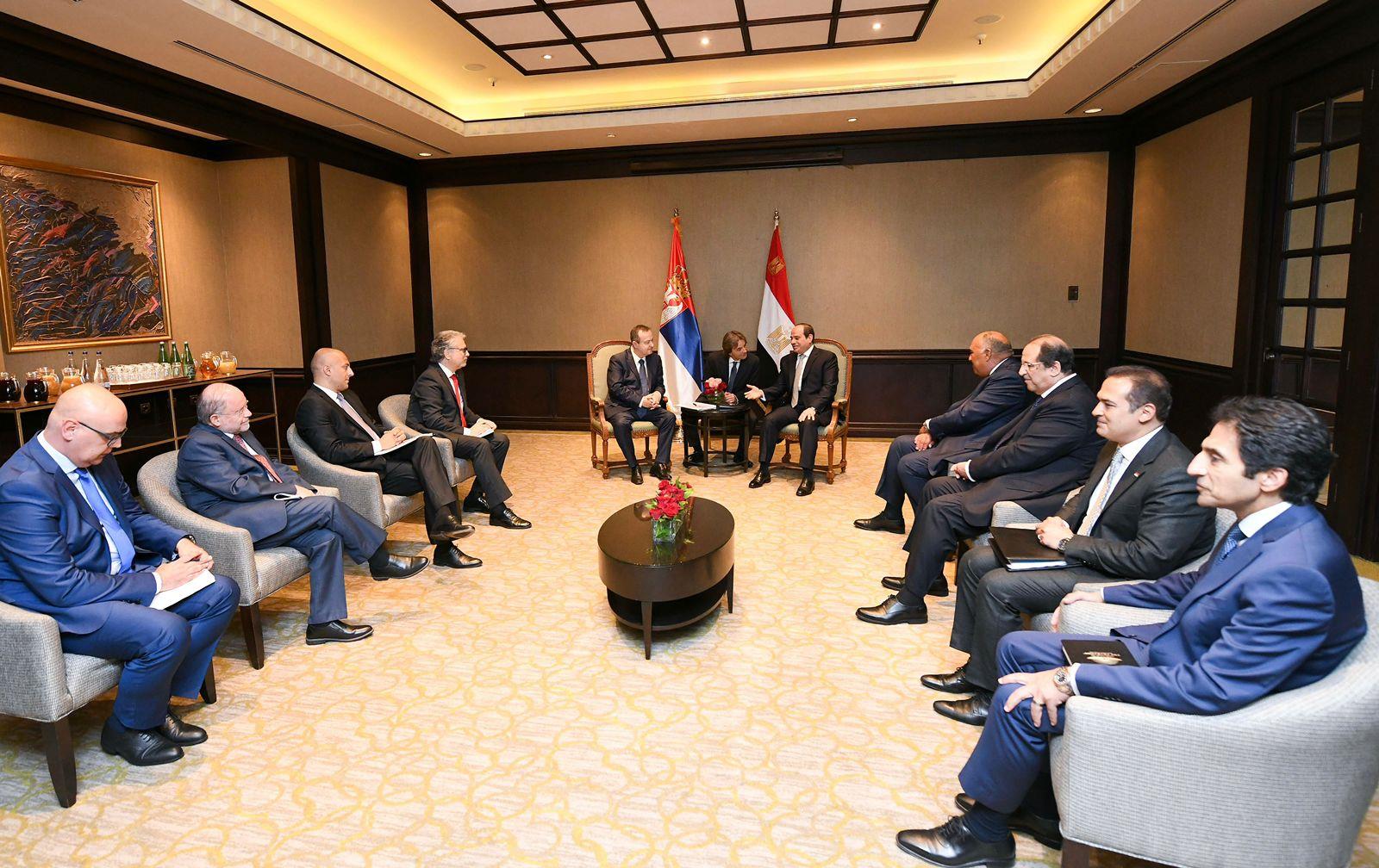 وقد رحب الرئيس بتعظيم التعاون مع الجانب الصربي في مختلف المجالات، خاصةً على مستوى التعاون العسكري والاقتصادي والتجاري والسياحي، بما يتماشى مع التوافق في الرؤى بين البلدين حول مجريات الأوضاع الإقليمية والدولية، لا سيما مع حالة عدم الاستقرار التي تشهدها الساحة الدولية، الأمر الذي يتعين معه البناء عليه لإيجاد تحرك مشترك من الدول ذات التوجهات المتشابهة، خاصةً في مجالات أمن الطاقة والأمن الإقليمي.