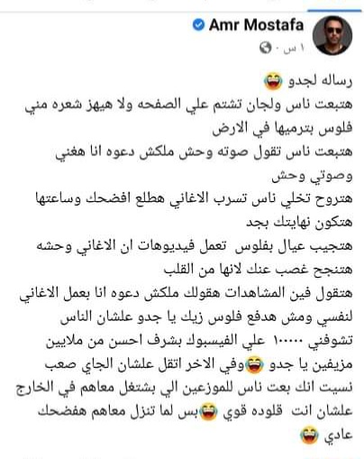 حيث كتب الفنان المصري عمرو مصطفى عبر حسابه بموقع Facebook: "رساله لجدو