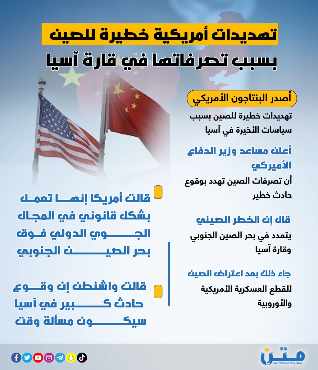 - أصدر البنتاجون الأمريكي تهديدات خطيرة للصين بسبب سياسات الأخيرة في أسيا