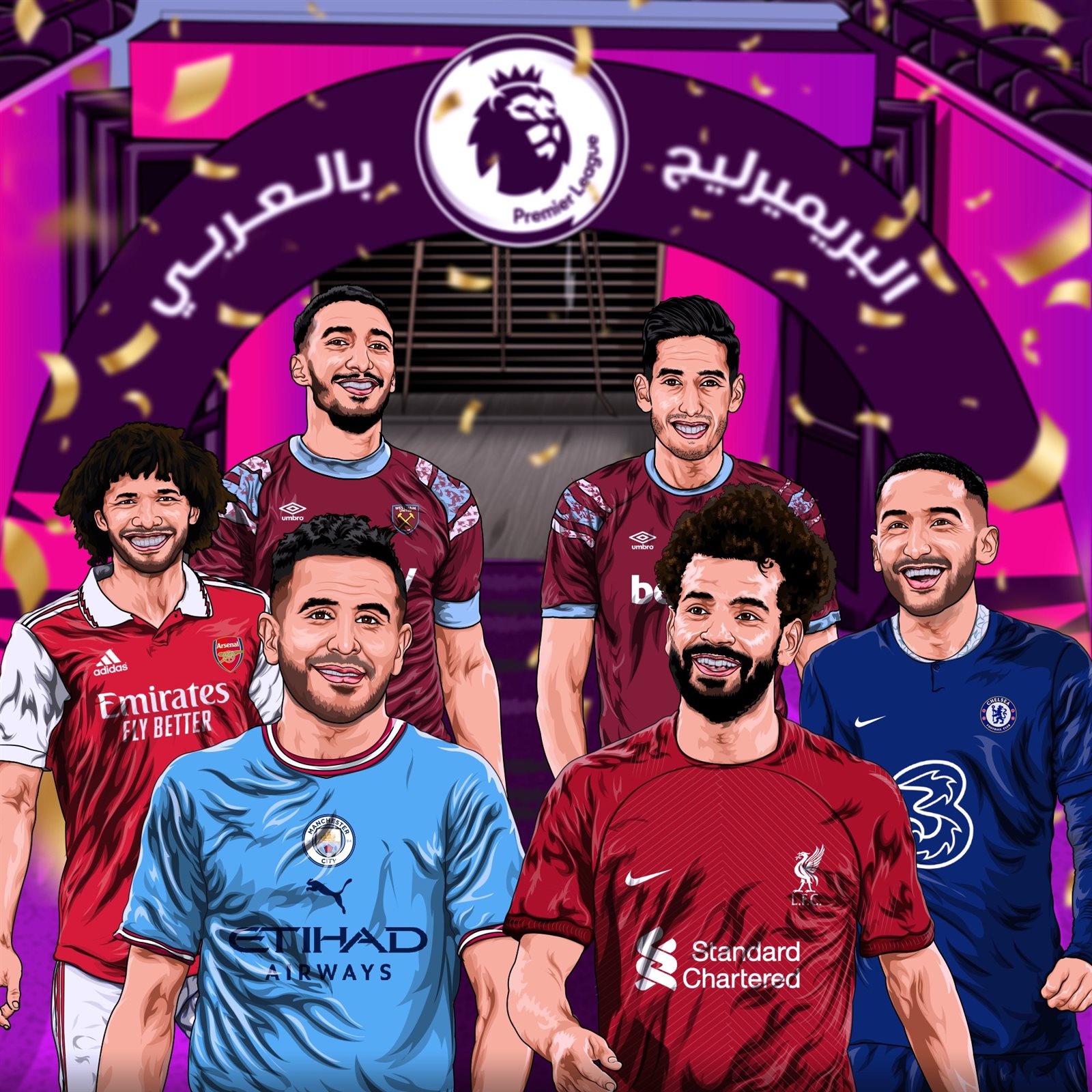 كما نشر الحساب صورة للنجوم العرب في الدوري الإنجليزي، أبرزهم الدولي المصري محمد صلاح ومحمد النني والجزائري رياض محرز والمغربي وحكيم زياش.