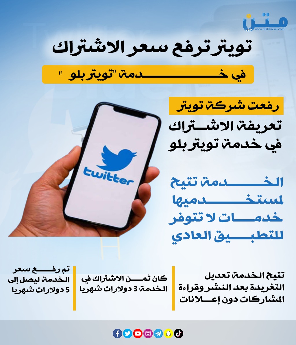 - رفعت شركة تويتر تعريفة الاشتراك في خدمة تويتر بلو