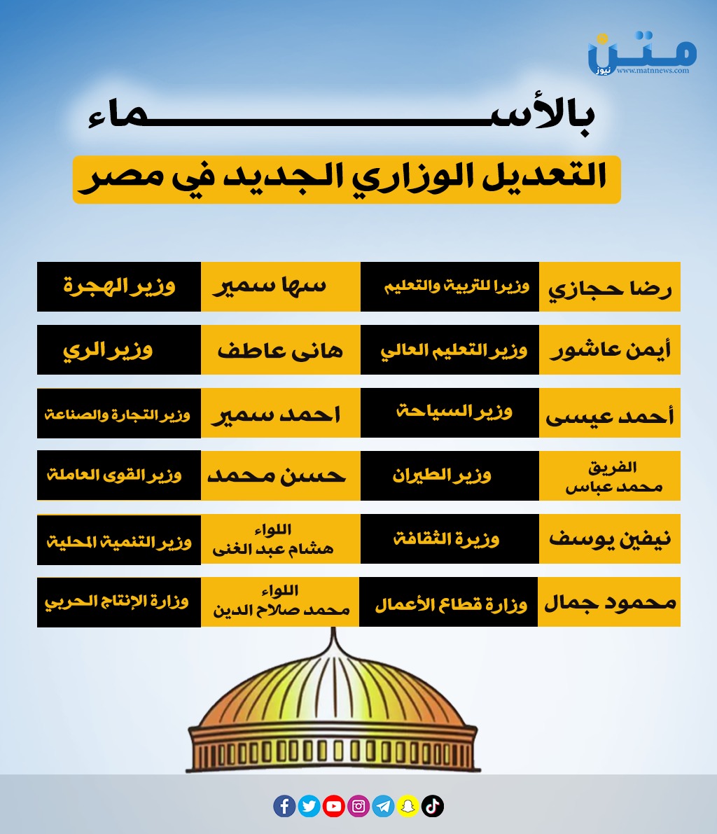 القائمة الكاملة لأسماء الوزارء الجدد في مصر (انفوجراف)