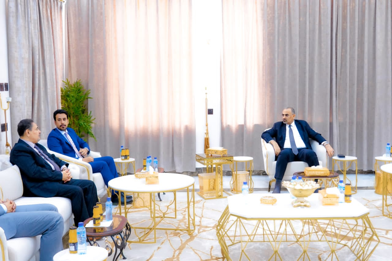 التقى اللواء عيدروس قاسم الزُبيدي رئيس المجلس الانتقالي الجنوبي في اليمن، ونائب رئيس مجلس القيادة الرئاسي اليمني، اليوم الأربعاء، في مكتبه بالعاصمة عدن، محمد الغيثي رئيس هيئة التشاور والمصالحة ونوابه د.عبدالملك المخلافي، وصخر الوجيه، وجميلة علي رجاء، والقاضي أكرم العامري.