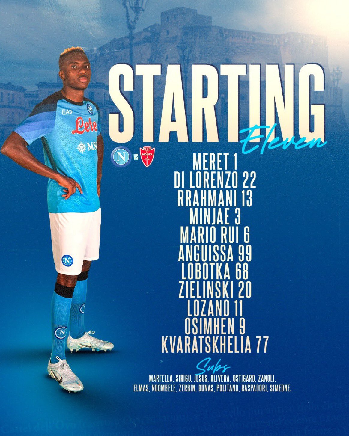"ميريت، دي لورنزو، رحماني، كيم مين جاي، ماريو روي؛ أنجيسا، لوبوتكا زيلينسكي؛ لوزانو، أوسيمين كفاراتسخيليا".