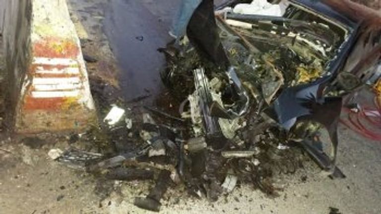 وتداول رواد مواقع التواصل الاجتماعي صورا من مكان الحادث وآثار دمار مروعة بسيارة الفنان.