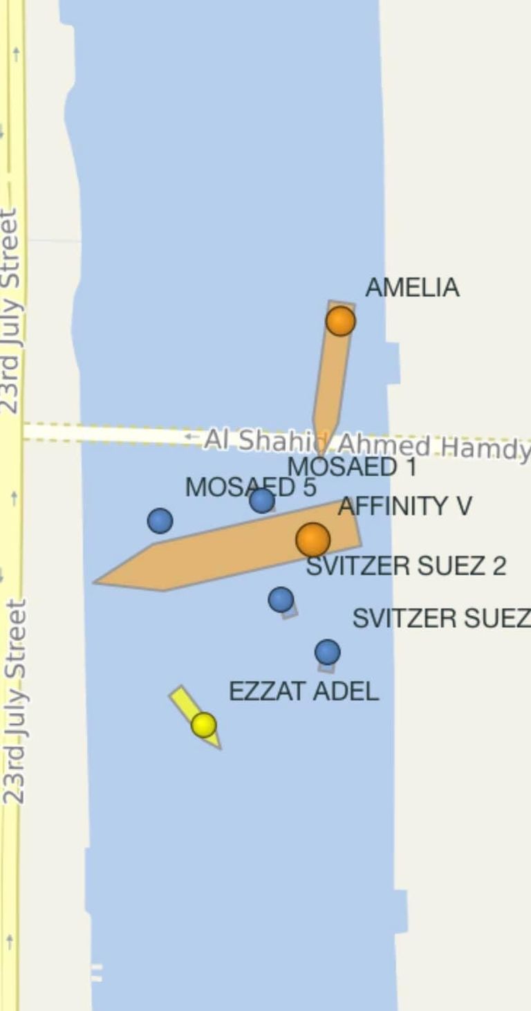 وتم الدفع بعدد 5 قاطرات وقسم الإنقاذ بالهيئة، للتعامل السريع مع الموقف وتعويم السفينة "AFFINITY V" السنغافورية الجانحة بالكيلومتر 143 ترقيم قناة، القادمة من البرتغال والمحملة بالنفط، وفي طريقها إلى ميناء ينبع بالسعودية.